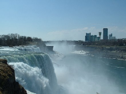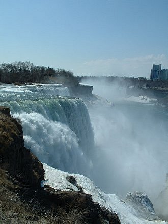 I was at Niagara Falls in May of whatever year, and the falls was still partially frozen. It was so beautiful and peaceful there, and I just loved it. I’ve always loved water – looking at it, being in it, hearing it – and Niagara did not disappoint. It was pretty chilly, and a lot louder than I anticipated, but I would love to go back there someday. I have a few more tiny pictures from that day. I wanted to go to Canada, so the border people allowed me to cross the road into the country, which I thought was sweet 🙂.
