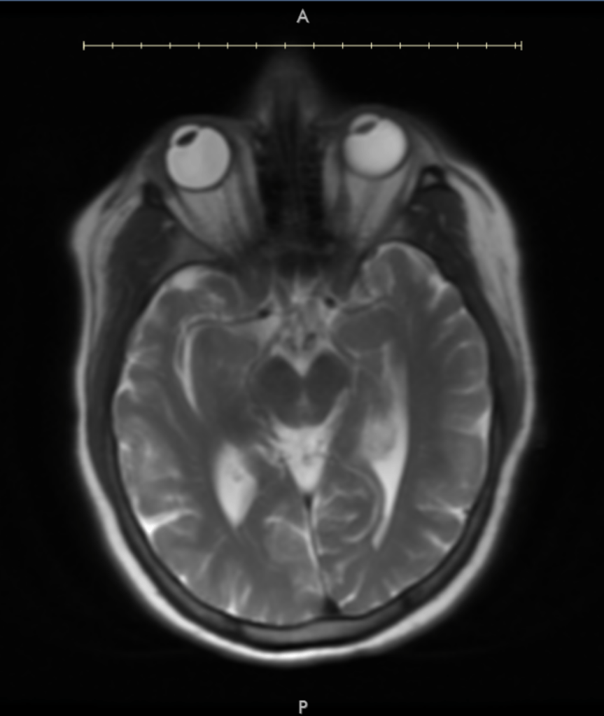 I received the results a few days later along with the images. Now, I cannot read scans to save my life, but some of these are so creepy-looking! I tried to correlate the images with the medical record, but I couldn’t. The assessment was only two or three sentences and said the scan’s consistent with Dandy Walker malformation (DWM), which Mom and I found out about when I was 17 after I had a brain CT due to frequent, nonmigrainous headaches.