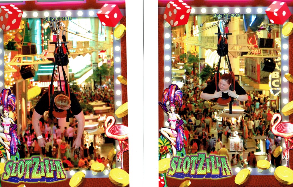 I’m not sure if it was the happiest I’ve been, but the most peaceful and exhilarating thing I’ve done was riding the Slotzilla Super-Hero Zoom Zoomline in Las Vegas. This was after Mom died and I decided to book us for the zoomline on a whim when I was planning our vacation. It’s quite odd because I don’t do well with heights at all. I get dizzy and nauseated standing on a chair or stool. Adam had to come help me off the side of Mom’s garden tub when I was painting and could not put my hand on the wall for support because I had just painted it. I hated going up in the arch in Missouri and had to go back down almost immediately after getting up there. It’s bad.