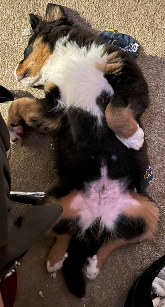 Oliver has started blocking when he is playing with Neville, and he’s really good at it. He does what basketball players do with their backs towards the opponent and looking back at them and moving around. The bad thing about this is he is doing it with me. I have acquired so many bruises over the past couple of weeks and I know they’re from the pups. I am very knock-overable, so I’m trying to get them to stop being so aggressive with me, which is going…okay.