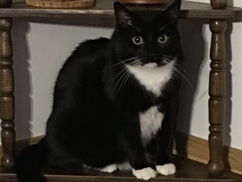 He and Theo have been staying out of Mom’s room since I got Ollie. Gandi stayed on the table most of the time near the cat food and water. Theo stays on the fridge. He had been to the vet two or three months prior for a urinary tract infection and received antibiotics.
