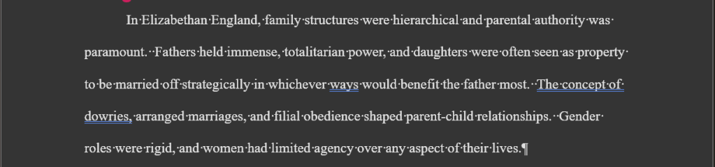 As seen in the announcement above, there is no need to summarize the play and provide an overview of the plot. Okie-dokie. I don’t feel it is necessary, so I leave out the plot and go on to briefly describe the context within Elizabethan culture.